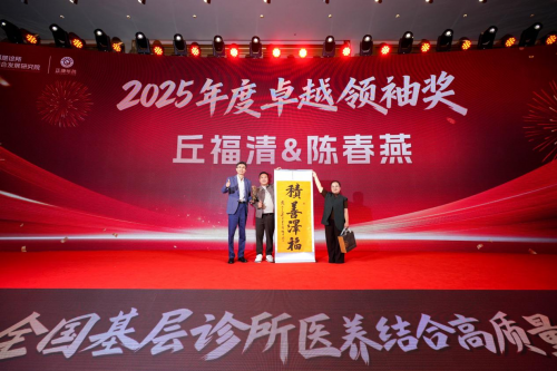 "2025年度医养结合精诚奖",以一方名医的仁心仁术,深耕基层,用医养结合解决方案守护万家健康,行业内赢得了极高的口碑与影响力,与正康华药使命,立足基层医疗,弘扬济世仁心,不谋而合。他们是:林仁生与王冬梅伉俪、彭石浓与肖秋兰伉俪,由中国抗衰老促进会新质发展分会会长、国家卫健委干部培训中心原副主任、国家卫健委党校原副校长李勇军先生颁奖。