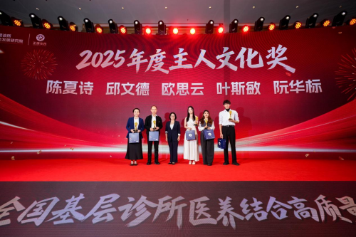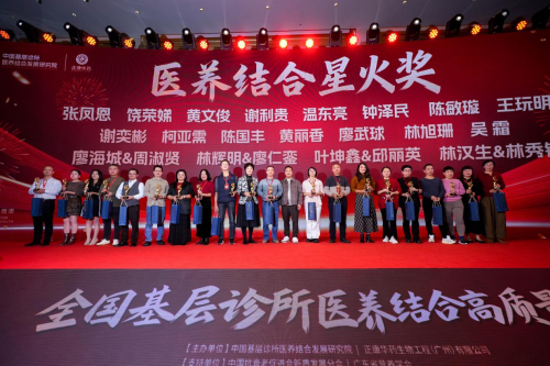 "2025年度医养结合典范奖",他们对推动基层诊所高质量发展贡献了很大的力量,让左手治疗方,右手营养方走进千家万户,树立了典范。他们是:刘光辉,陈远生、林国金、周佳丽、徐伟、林绥之、陈炳宣、范娟美、林万茂、马桂强、阳金娥、刘向荣与钟长生事业伙伴、吴奔与张乐恩伉俪、朱伟锋与张丽明伉俪、郑瑞洪与林春兰伉俪、王芳与年里东伉俪、林俊辰与金余伉俪,由中山大学公共卫生学院郭城教授颁奖。